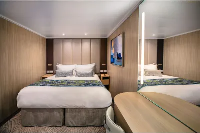 This deluxe balcony stateroom provides outstanding views from a private balcony with 2 chairs and table, floor-to-ceiling sliding glass doors, and bathroom with shower. Perfect for watching stunning Caribbean sunsets and port arrivals.